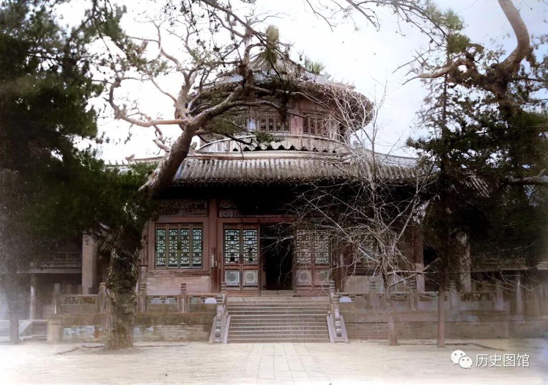 这是当时雍和宫里的一栋建筑。雍和宫始建于清康熙三十三年(1694年),为康熙四子雍亲王的王府,主要殿堂用的是黄色琉璃瓦。