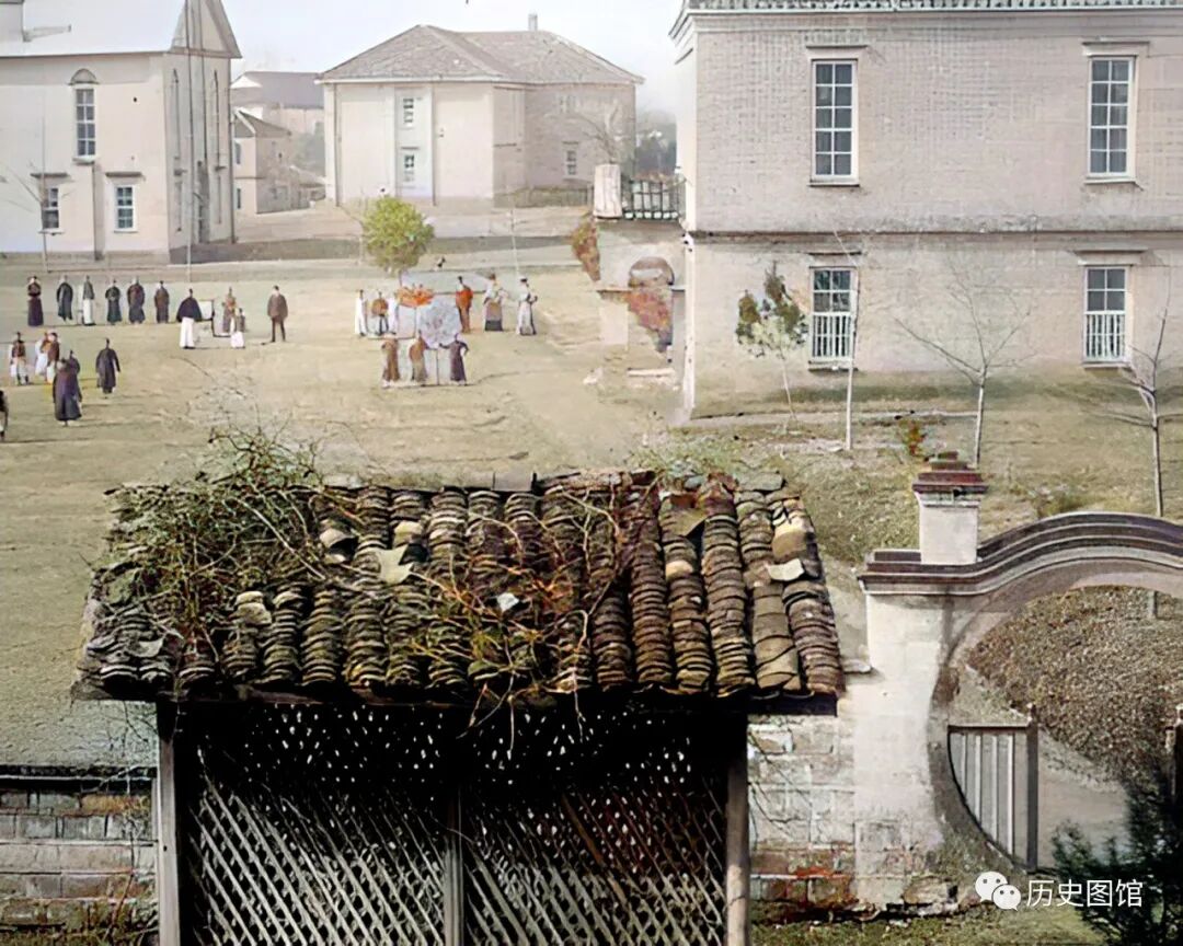 这张照片看上去像是一所学校,有高大的教室和宽敞的操场,这就是当时九江著名的“南伟烈大学”。师生们正在操场上举行集体活动。