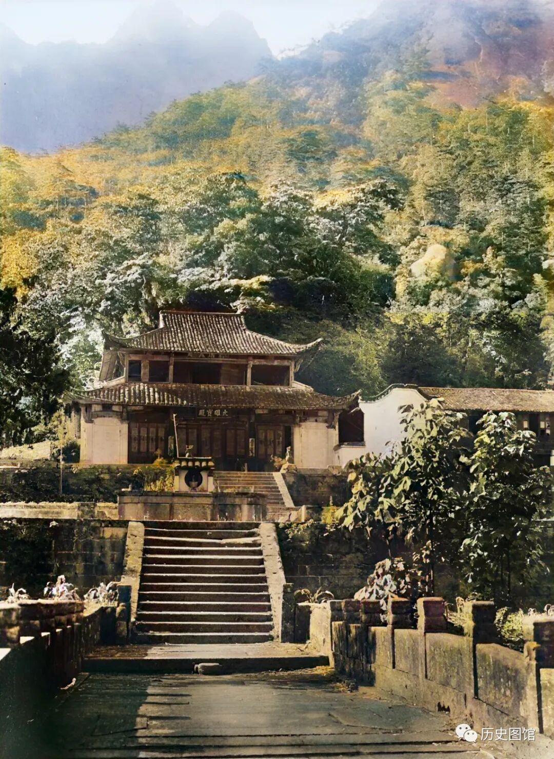 30年代,黄山慈光寺面貌。沿着台阶上去,最高的建筑就是大雄宝殿,非常气派。徐霞客也曾来到慈光寺:“初五日,云气甚恶,余强卧至午起。挥印言慈光寺颇近,令其徒引。”