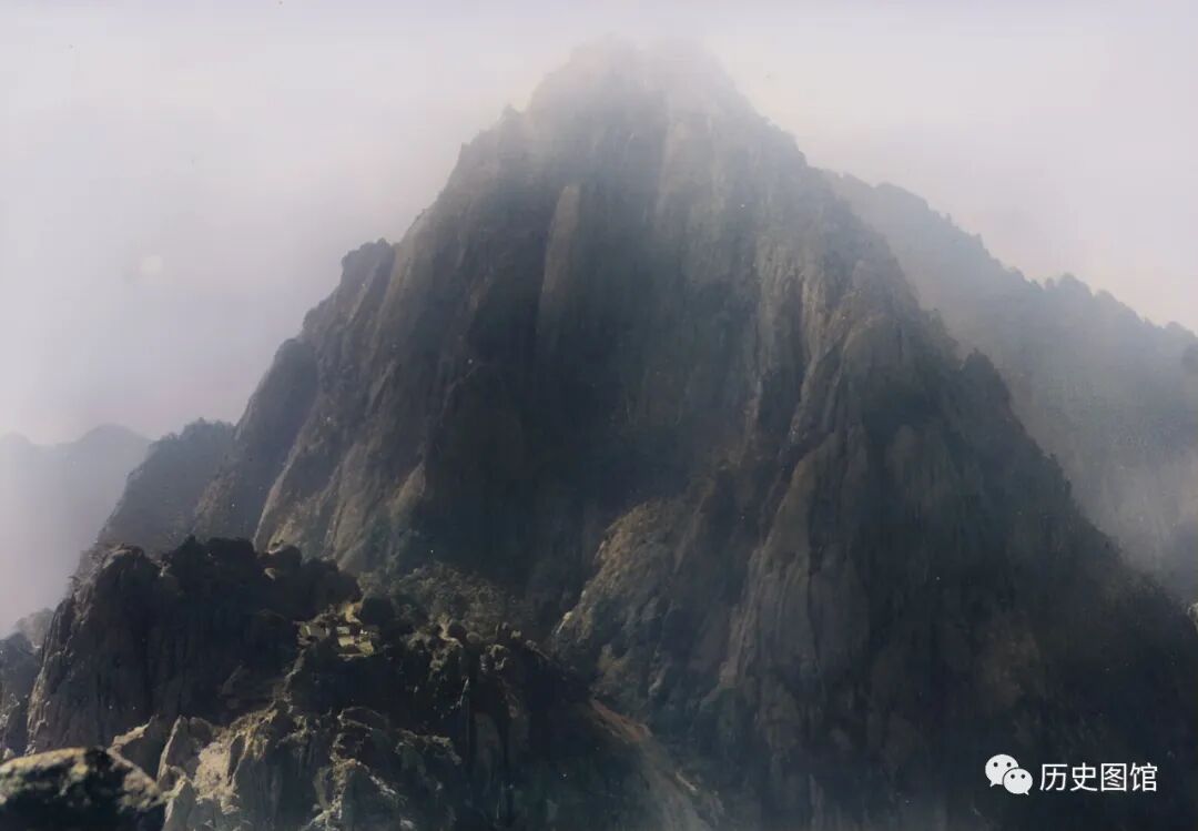 30年代,黄山石门峰景象。石门峰是黄山36大峰之一,为黄山第四高峰,海拔1823米。山峰中间分开,两山相通,峰顶两壁夹峙如门。