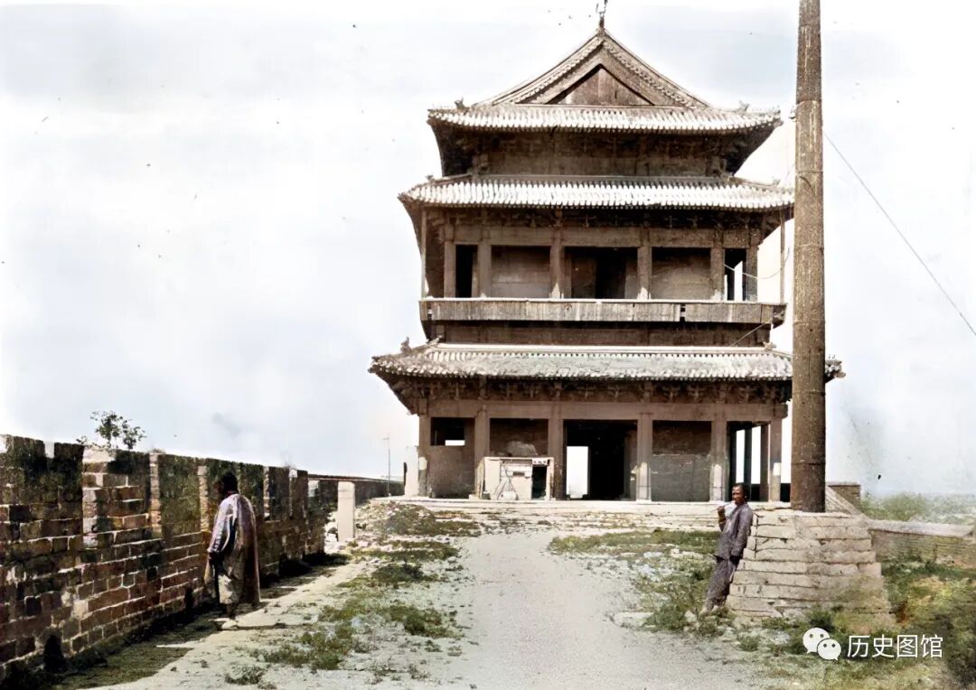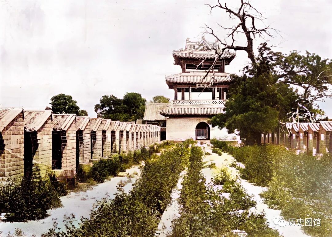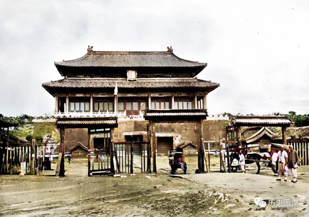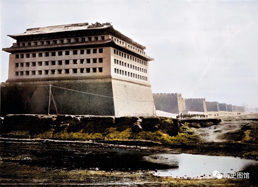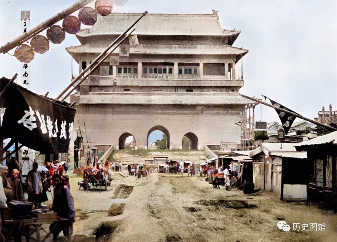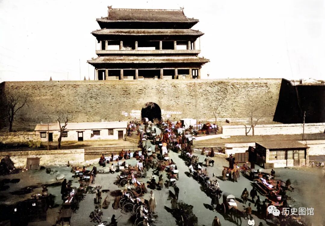 这是当时北京的西华门。西华门始建于明永乐十八年(1420年),城楼面阔五间,三座券门。门外设有下马碑石。清朝末期,八国联军攻打京城时,慈禧太后与光绪皇帝一行人,就是从西华门离开皇宫西逃的。