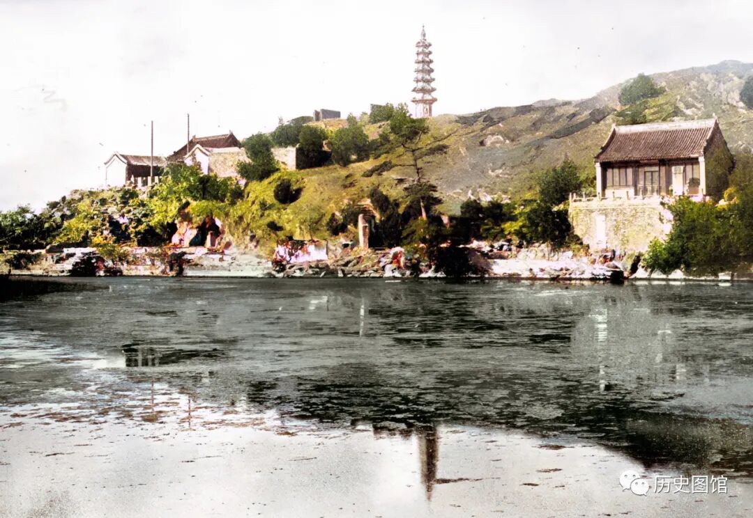 1903年,北京玉泉山景象。玉泉山位于颐和园西侧,是京郊有名的风景游览地。“玉泉垂虹”引为“燕京八景”之一。玉泉山有四座宝塔,照片中看到的是玉峰塔。