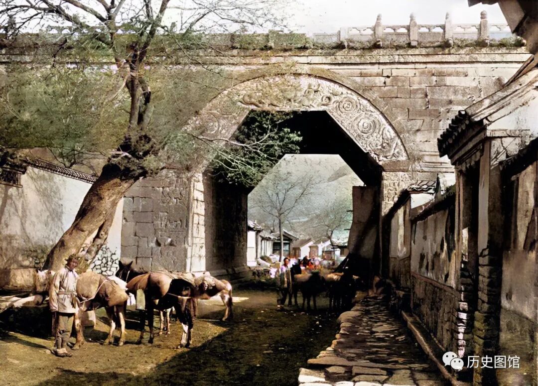 1906年的北京居庸关。照片中,一队马帮正在关前休息。居庸关地形险要,是长城上的重要关城,号称"天下第一雄关"。另外,居庸关附近风光秀丽,有"居庸叠翠"之称,更被列为"燕京八景"之一。