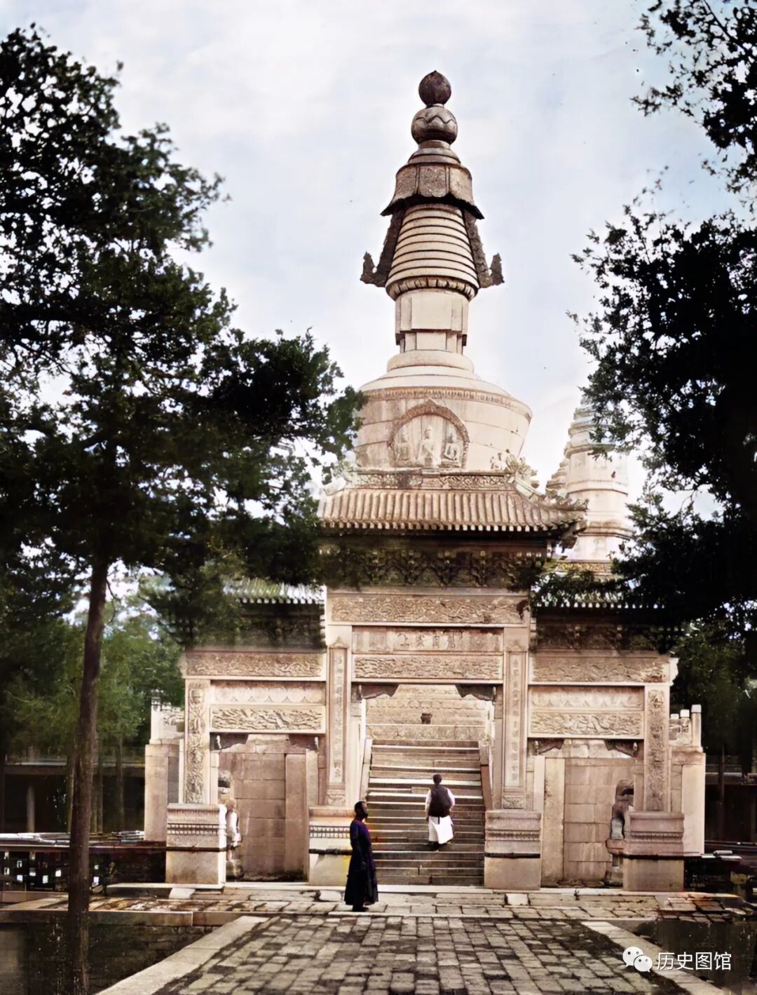 这张照片拍摄于北京五塔寺,该寺创建于明代永乐年(1403-1424年)。寺内高石台上有五座小型石塔,约建成于明成化九年(1473年),名为"金刚宝座塔"。