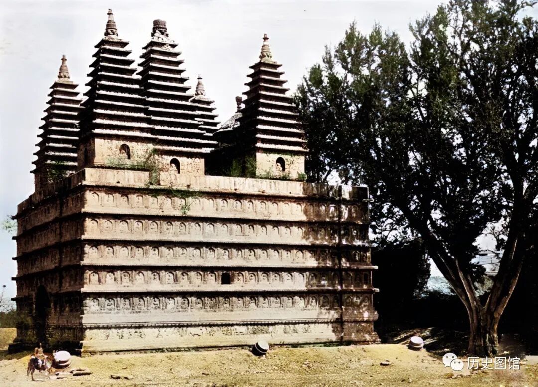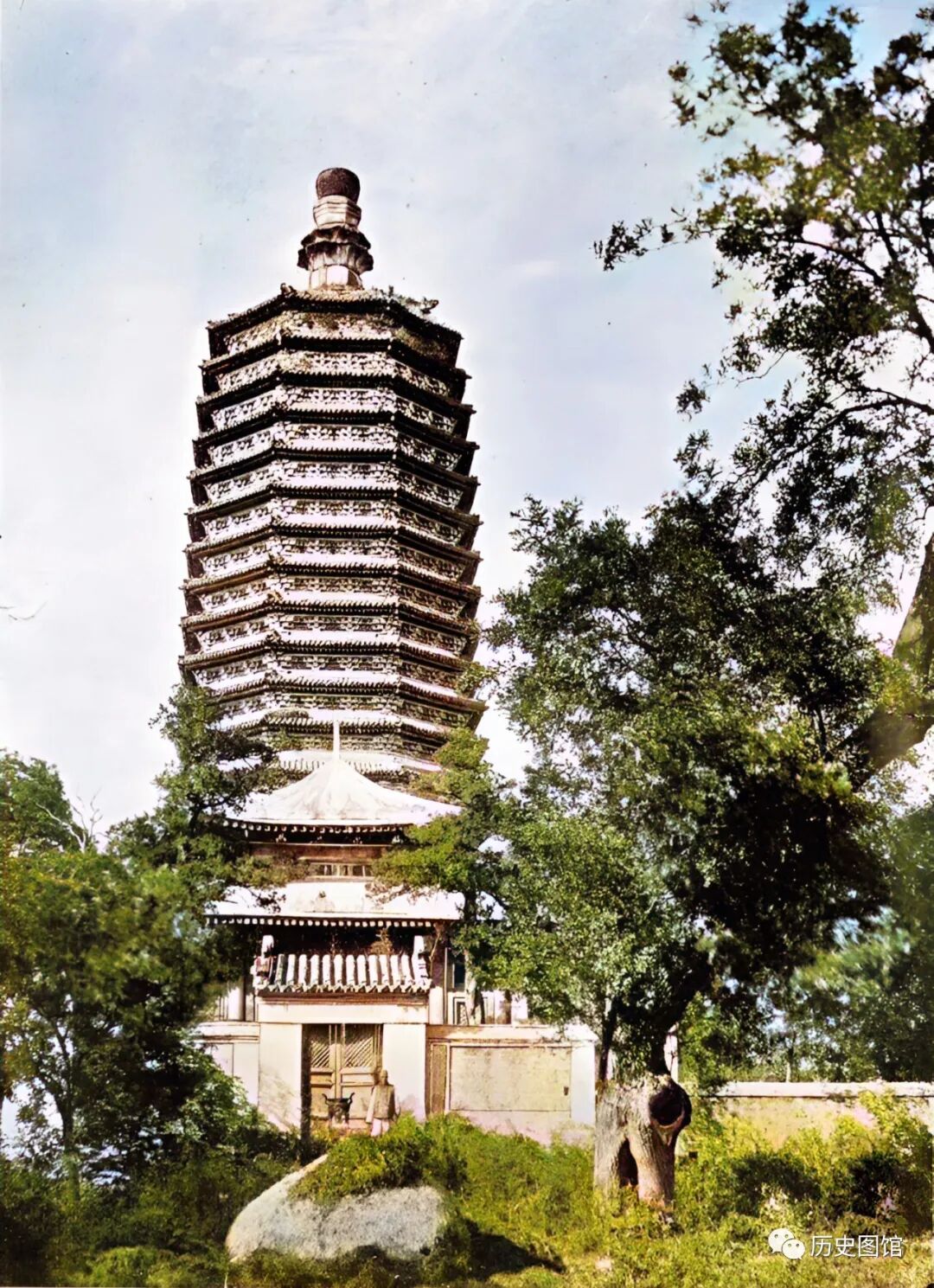 1906年,北京天寗寺塔雄姿。这是一座八角十三层密檐式实心砖塔,该塔始建于辽天庆九年(1119年)。它是目前北京城内和郊外的寺塔中完整矗立着的一个最古老的建筑物。