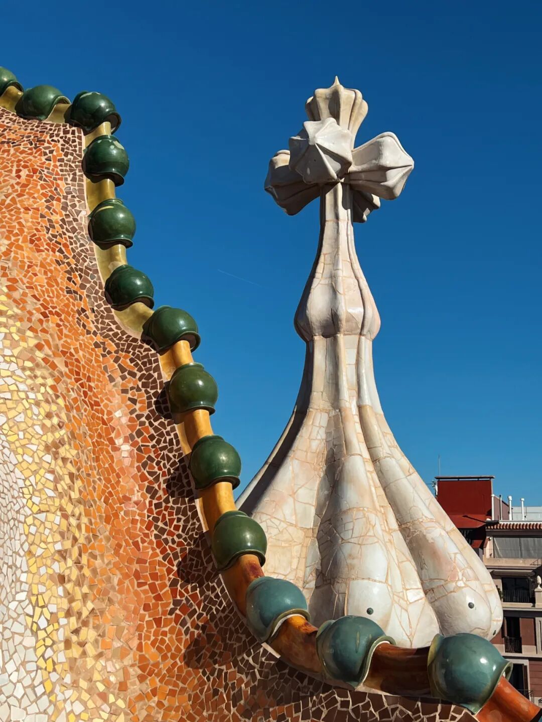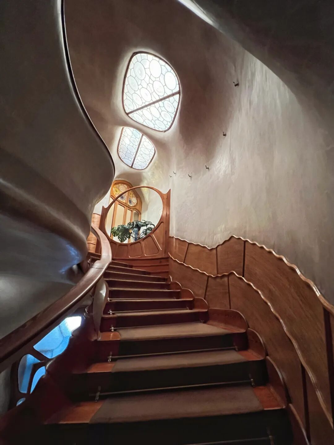 巴特罗之家(Casa Batlló)不仅外形奇幻,内部布置也充满超现实主义色彩,就连互动式参观都很吸引人。它使用AR技术让人置身高迪的时代,直观地感受到高迪的设计理念和当时的社会文化背景,据说整栋建筑设计的核心源于一个神话故事:公主被恶龙困在城堡中,加泰罗尼亚的英雄圣乔治为了救出公主,与恶龙搏斗并用剑杀死了它。巴特罗之家的屋顶呈拱形,就像恶龙的背部。
