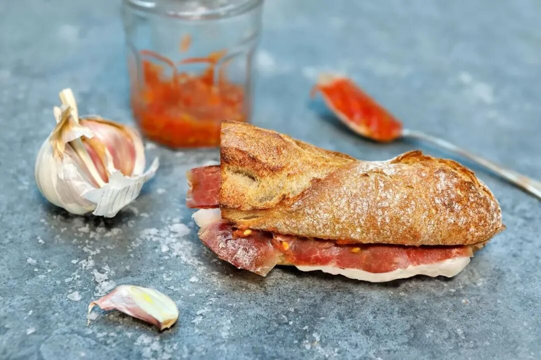 如果可颂不顶饱,可以试试西班牙火腿三明治Bocadillo de Jamón,法棍外表酥脆内里有嚼劲,火腿肉香浓郁,有时还会加入奶酪和番茄,搭配起来简直一绝。