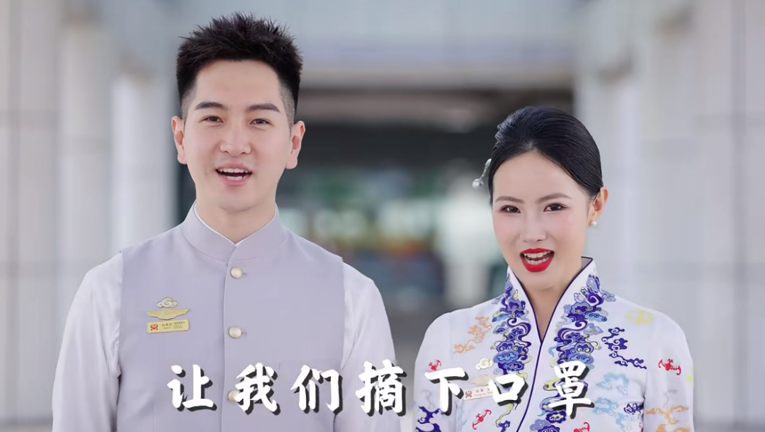 昨晚的新闻,来自海南航空官方视频号,宣布"摘下口罩,带上微笑"。