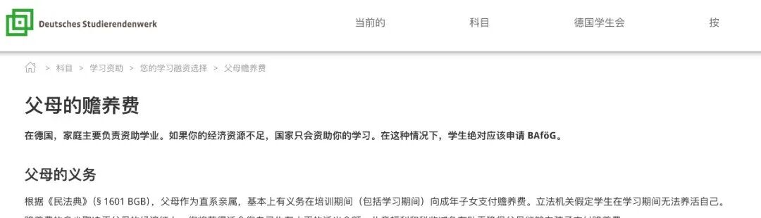 根据德国《民法典》(§ 1601 BGB),父母有义务在培训期间(包括学习期间)向成年子女支付生活费。