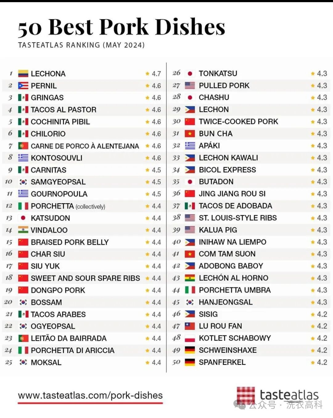 中国作为吃猪肉大国,总体排名不如墨西哥(没办法,美国人评的,人家离墨西哥近),但数量最多: