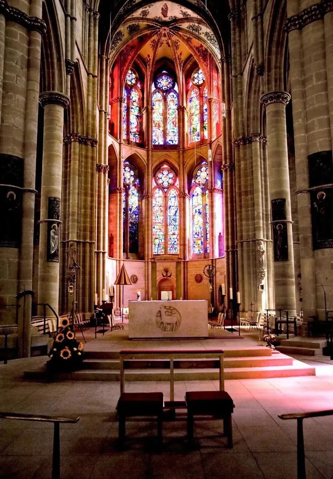 壮观的圣坛和圣玛利亚教堂的彩色玻璃