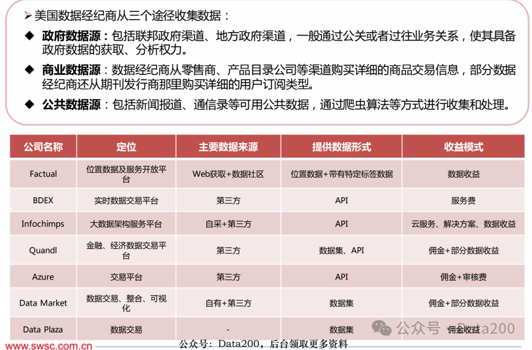 企业主导,发展综合性数据服务。如美国BDEX、Mashape等第三方数据交易平台,为数据买卖双方提供全方位的交易服务。