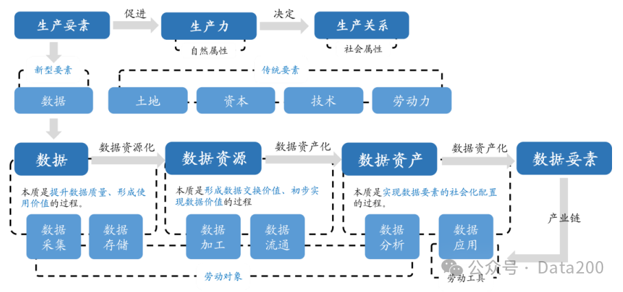 数据要素化是指将数据作为一种生产要素,通过一系列的流程和方法,转化为具有价值的数据资产,并通过市场交易实现价值实现的过程。数据要素化是数字经济发展的必然要求,能够提高数据的利用效率,促进数据价值的实现,推动数字经济发展。
