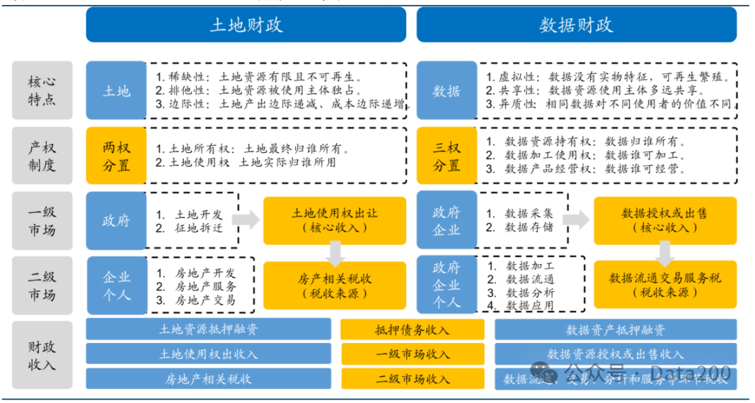 基础:土地财政是基于有限的自然资源,而数据财政是基于无限的数据资源。土地是有限的,随着城市化进程的加快,土地资源将会越来越稀缺,土地财政的潜力将会逐渐下降。数据是无限的,随着数字经济的快速发展,数据资源的价值将会越来越高,数据财政的潜力将会越来越大。