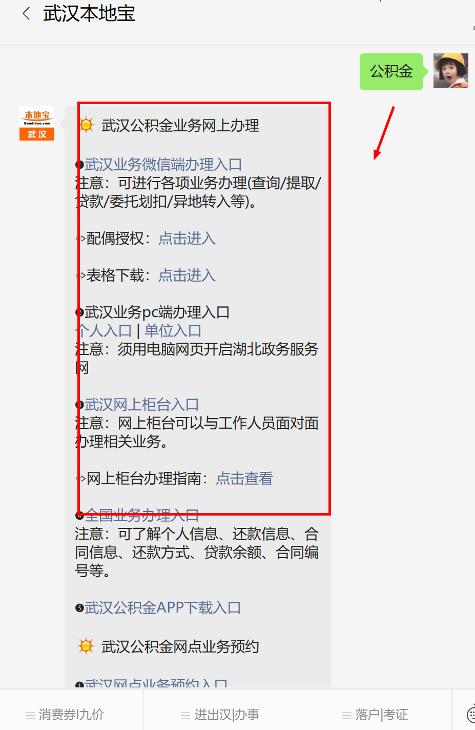 点击下方名片,关注武汉本地宝微信公众号,在首页对话框发送【公积金提取】,即可获取相关提取指南。