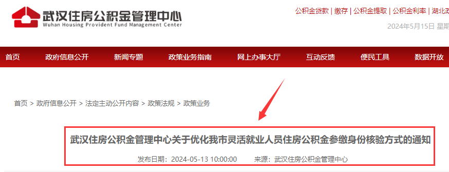 武汉住房公积金管理中心关于优化我市灵活就业人员住房公积金参缴身份核验方式的通知