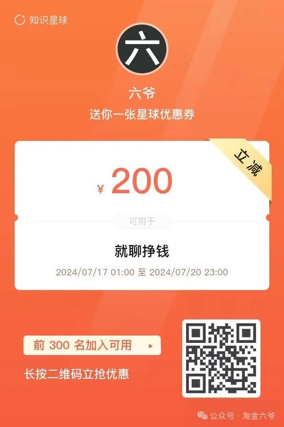 星球原价299元,新用户加入星球,领取优惠劵后,仅需要99元,前 100 用户还会送一个星球整理的电子书。
