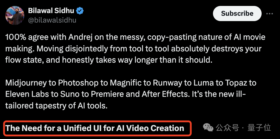 从一个工具转移到另一个工具会破坏工作状态,说实话,这限制了这些工具对效率的提升。AI视频创作需要统一的UI。