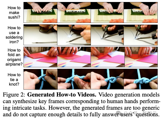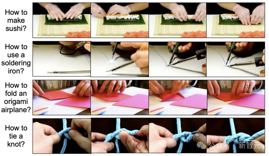 模型可以通过生成操作视频(例如「如何制作寿司」)来回答人们的问题,这可能比文本响应更直观。