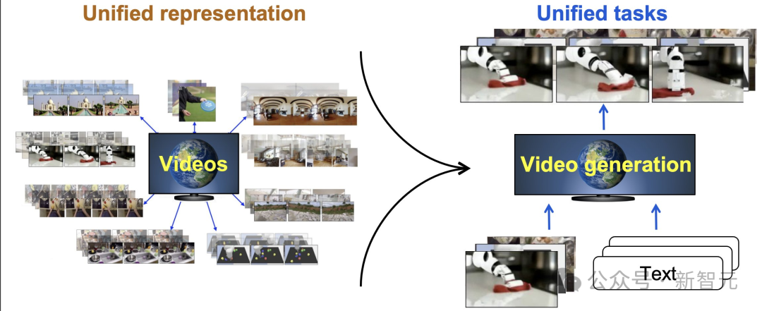 研究人员认为,与文本类似,视频可以作为一个统一的接口,吸收互联网知识并表征不同的任务。