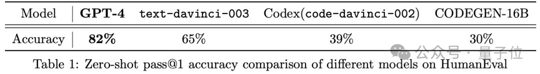 比如在零样本下,GPT-4代码能力在HumanEval上的精度达到82%。