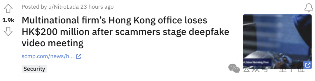 参考链接:[1]https://www.scmp.com/news/hong-kong/law-and-crime/article/3250851/everyone-looked-real-multinational-firms-hong-kong-office-loses-hk200-million-after-scammers-stage[2]https://twitter.com/garymarcus/status/1754188331188130201