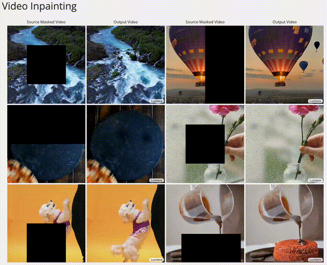以下是使用Lumiere进行视频修复的示例。