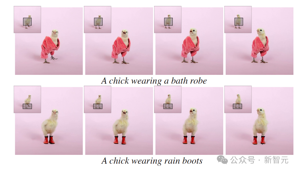 对于每个输入视频(每个帧的左上角),研究者都使用了Lumiere对视频的掩码区域进行了动画处理。