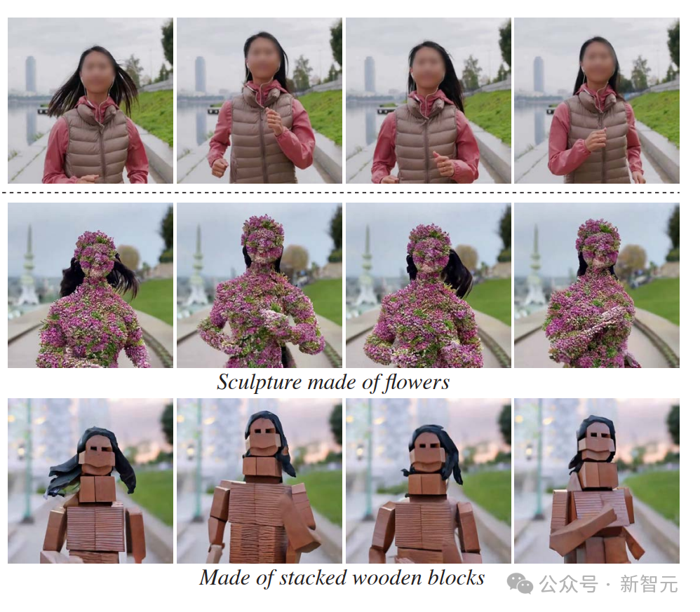 正在跑步的女孩,只要用文字编辑,就可以让她长满鲜花,或者变成木砖风、折纸风、乐高风。