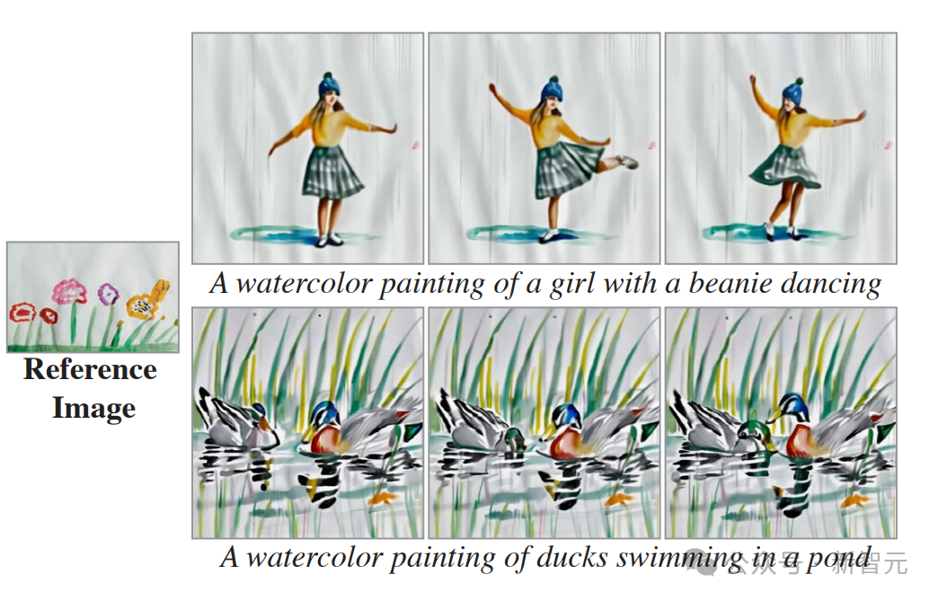 可以看到,对比参考静图的风格来看,生成视频的风格复现得非常精准。
