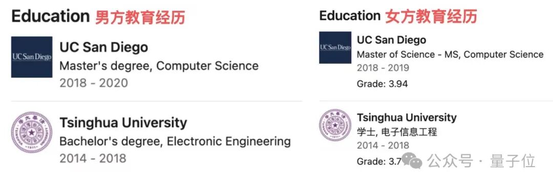 他俩本科都在清华电子工程系就读,而后,两人均前往UCSD取得研究生学历,获计算机科学硕士学位。