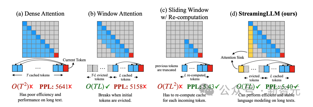 当我们使用基于滑动窗口的注意力机制时,一旦这几个token被踢出了窗口,模型的生成效果就会迅速崩溃。但只要一直把这几个token保留在窗口内,模型就能稳定地生成出高质量的文本。