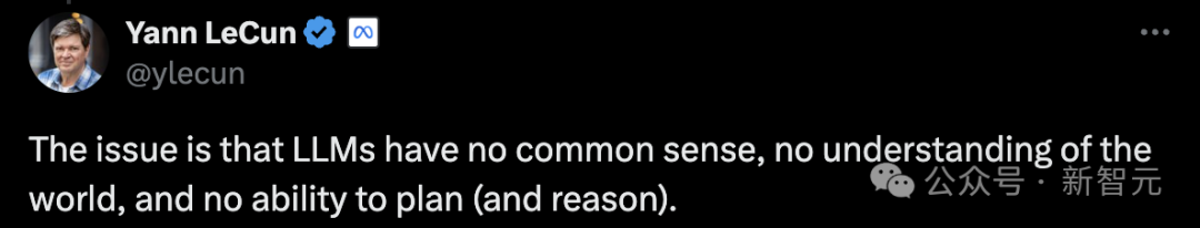 问题在于,LLM没有常识,不理解现实世界,也不会规划和推理。