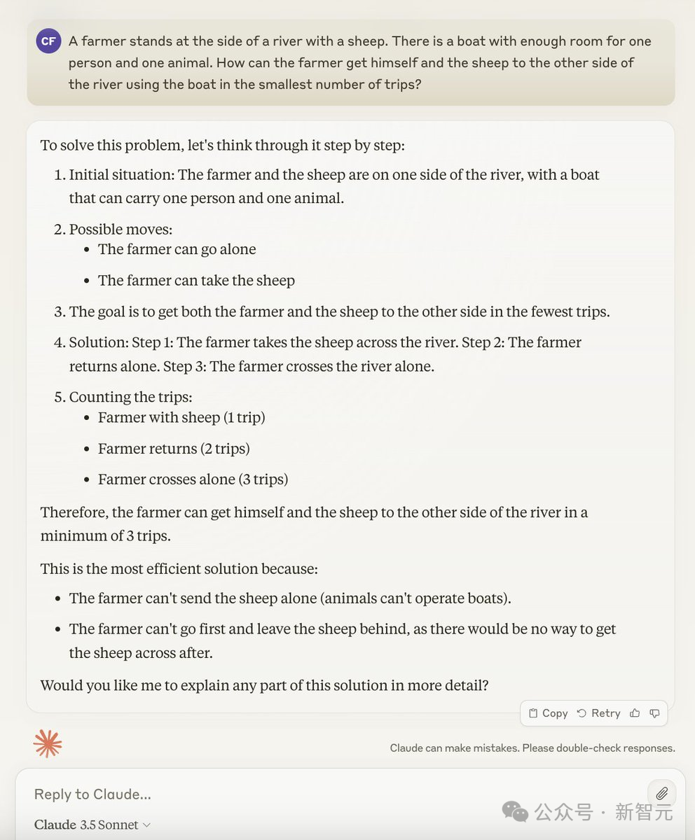【导读】LLM能否解决「狼-山羊-卷心菜」经典过河难题?最近,菲尔兹奖得主Timothy Gowers分享了实测GPT-4o的过程,模型在最简单的题目上竟然做错了,甚至网友们发现,就连Claude 3.5也无法幸免。