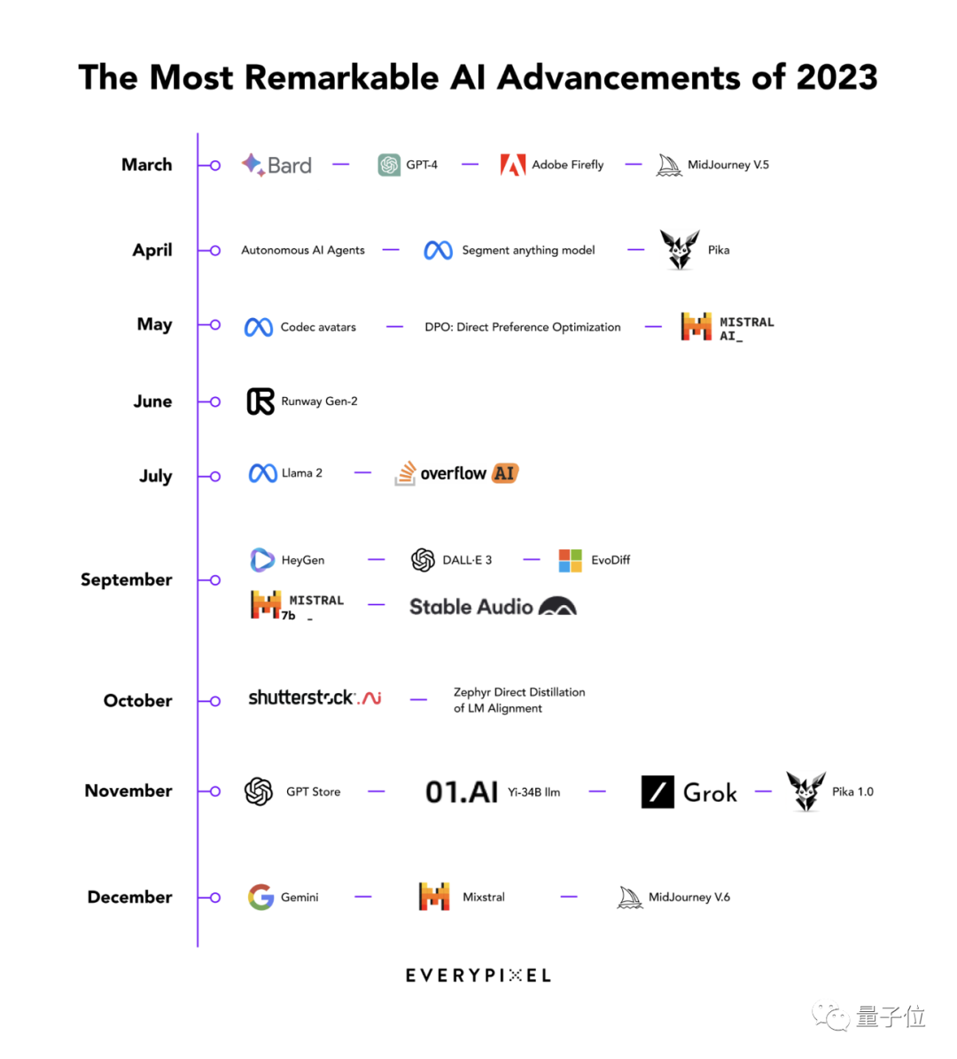 来自Everypixel Journal的一份统计报告,梳理了2023年3月-12月AI行业值得关注的大事件。