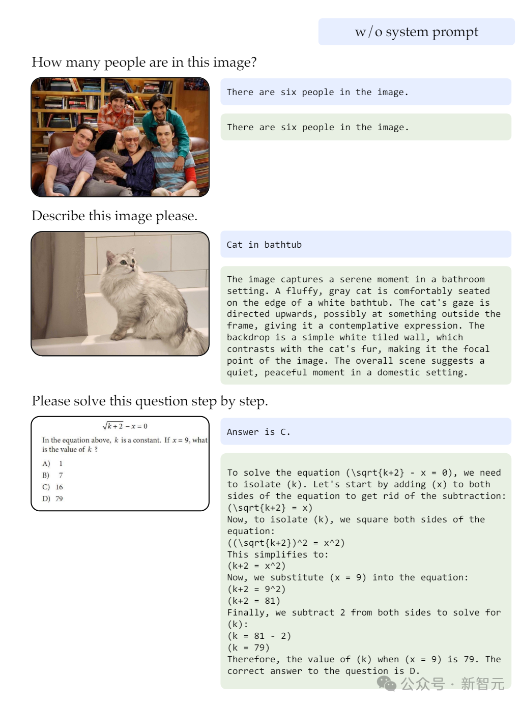而且,系统提示还会通过鼓励一连串的思考,来增强模型在推理任务(如数学问题)上的表现。