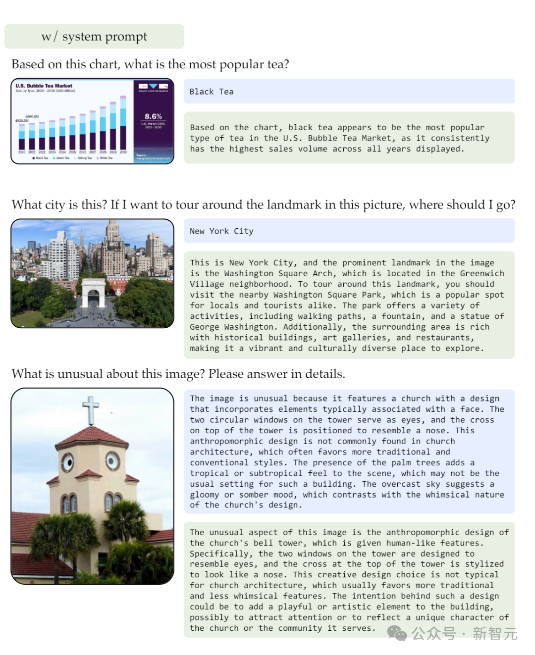 比如下图中,带有系统提示的模型会在正确回答问题的同时,产生更长、更有吸引力的回答。