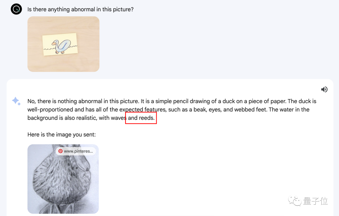 说Gemini没看我们上传的图吧,读出来的又的确是鸭子;说它看了吧,又给出了完全不同的一张的图说是我们传上去的。