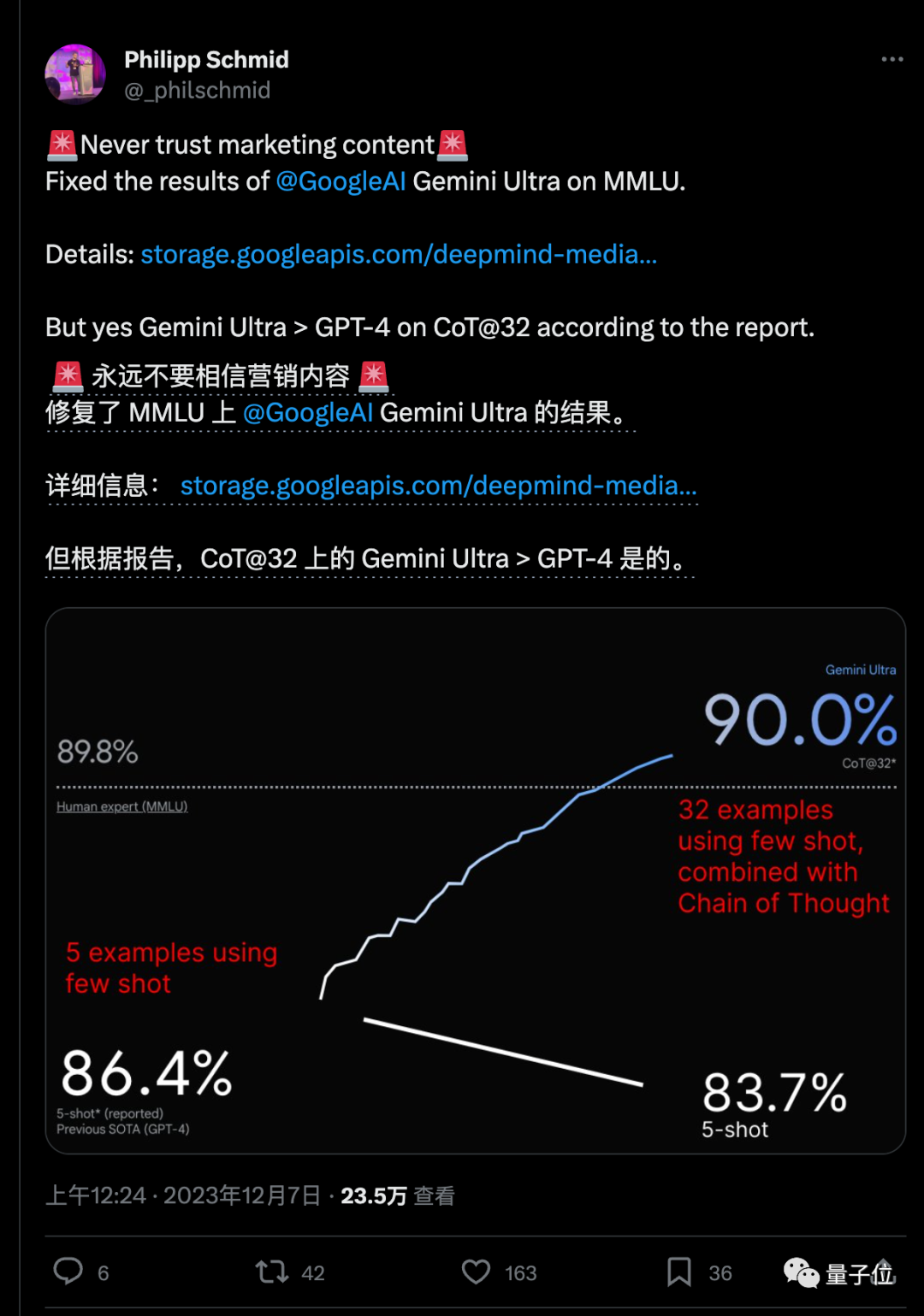 参考链接:[1]https://x.com/AravSrinivas/status/1732427844729581764[2]https://x.com/DimitrisPapail/status/1732529288493080600[3]https://www.linkedin.com/posts/svpino_google-this-is-embarrassing-you-published-activity-7138287283274686464-osJ5[4]https://developers.googleblog.com/2023/12/how-its-made-gemini-multimodal-prompting.html[5]https://x.com/ScottDavidKeefe/status/1732440398423867472[6]https://x.com/goodside/status/1732461772794220919[7]https://x.com/emollick/status/1732485517692776714