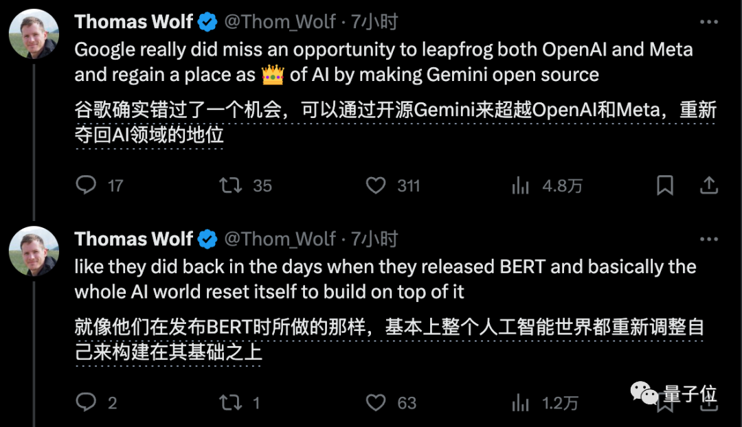 而HuggingFace联创Thomas Wolf认为,谷歌错过了一个重要机会: