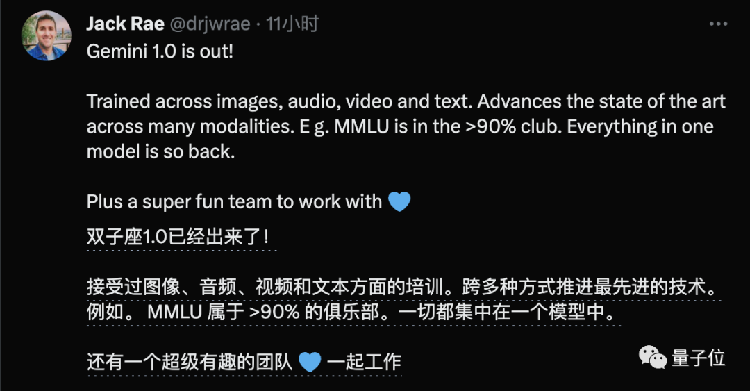 许多参与者也在个人账号发表了感想,其中DeepMind老员工Jack Rae此前在OpenAI工作一段时间,今年7月份从OpenAI跳回到谷歌,他可能是唯一一位对GPT-4和Gemini都有贡献的人类了。