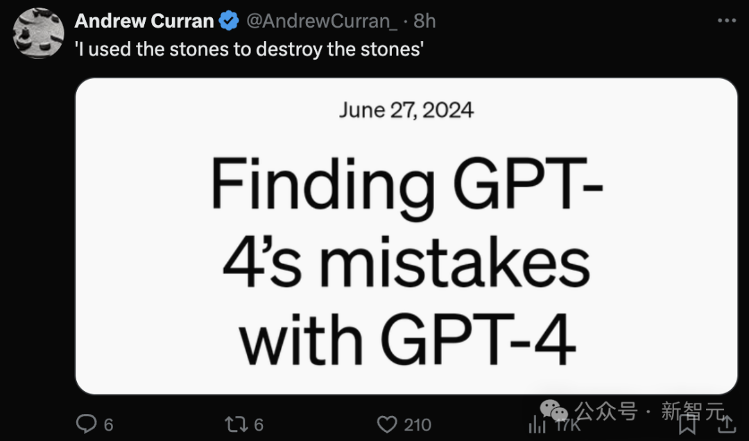 或许是为了缓解广大网友的热切期待,OpenAI在今天放出了新模型CriticGPT,相当于GPT-4的「拐杖」。