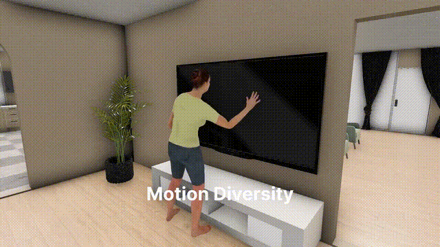 而且,还支持从简单(如行走和挥手)到复杂(如与物体交互)等各种类型的动作,并兼容动捕。