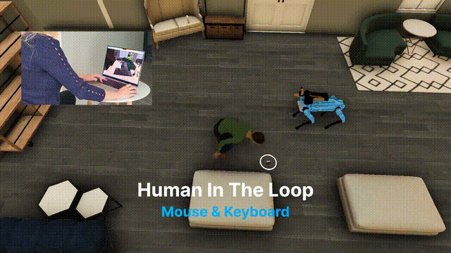 这些人形化身既可由学习到的策略控制,也可由真人通过「human-in-the-loop」界面进行控制。