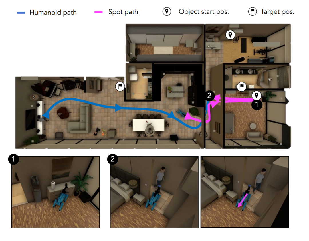 它能同时支持机器人和人形化身,让人类和机器人在家庭环境中协作,比如帮忙打扫房间。
