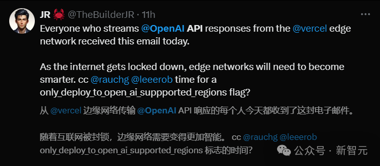 所有通过Vercel边缘网络访问OpenAI API的开发者今天全部收到了邮件。