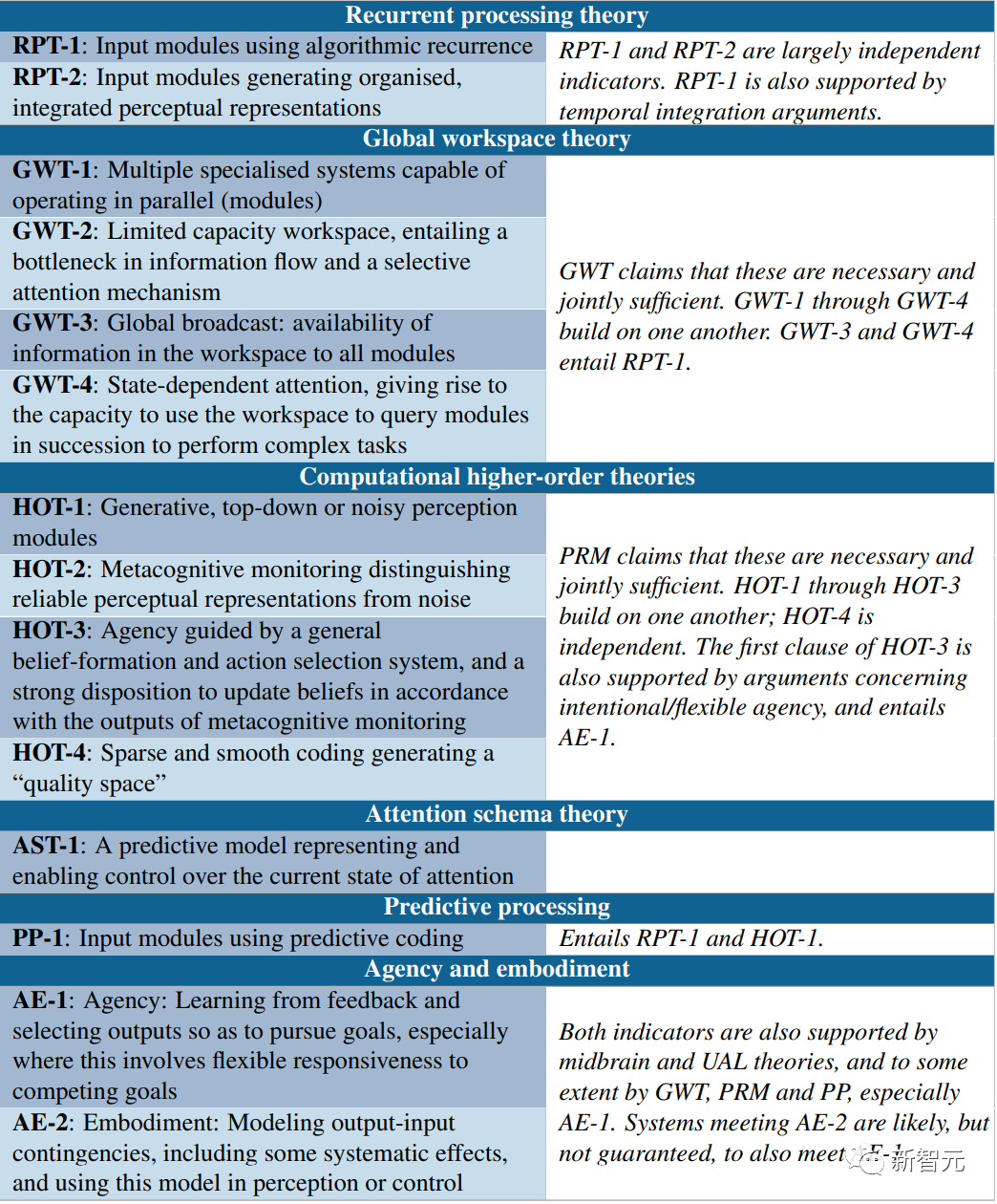 研究人员从这些理论与主张中提取了一系列有关意识的指标,这些指标可以应用于特定的系统中。