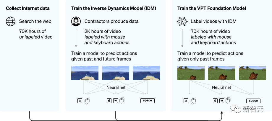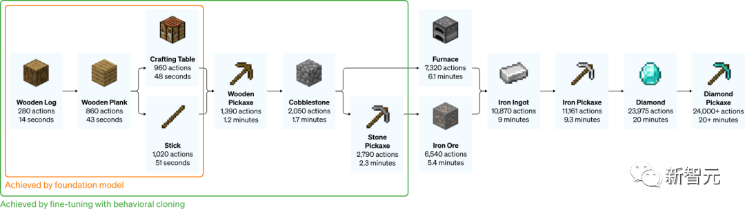而对于OpenAI来说,其实早在2022年的时候就提出了一种全新的VPT「视频预训练模型」,能够让AI学会了在「我的世界」里从头开始造石镐。