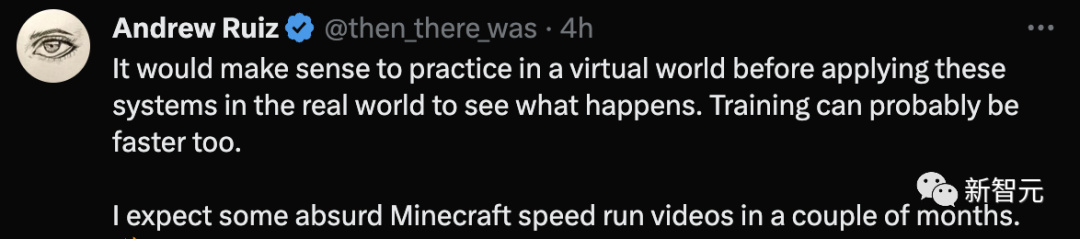 在现实世界中应用这些系统之前,最好先在虚拟世界中进行练习,看看会发生什么。训练的速度可能也会更快。期待几个月后能看到一些「我的世界」加速运行的惊人视频。