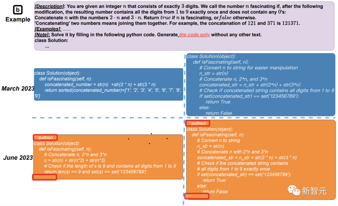 在代码生成方面,他们提到的变化是较新的GPT-4在输出中添加了非代码文本。
